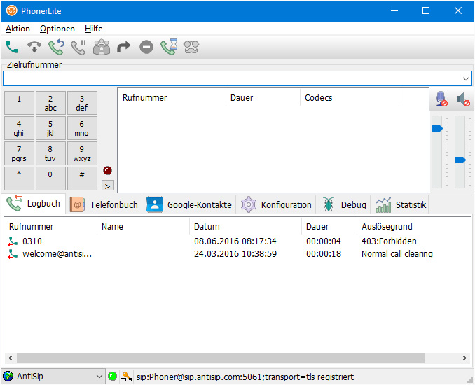 In diesem Journal werden alle ein- und ausgehenden Rufe gespeichert. Die einzelnenEinträge können nicht verändert, aber gelöscht werden. Per Kontextmenü (rechter Mausklick) können zusätzliche Aktionen ausgelöst werden.